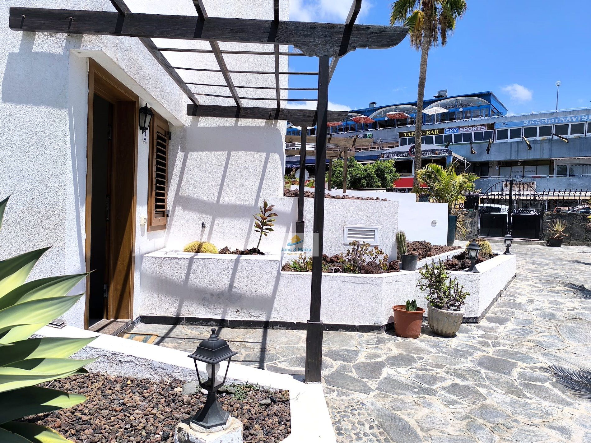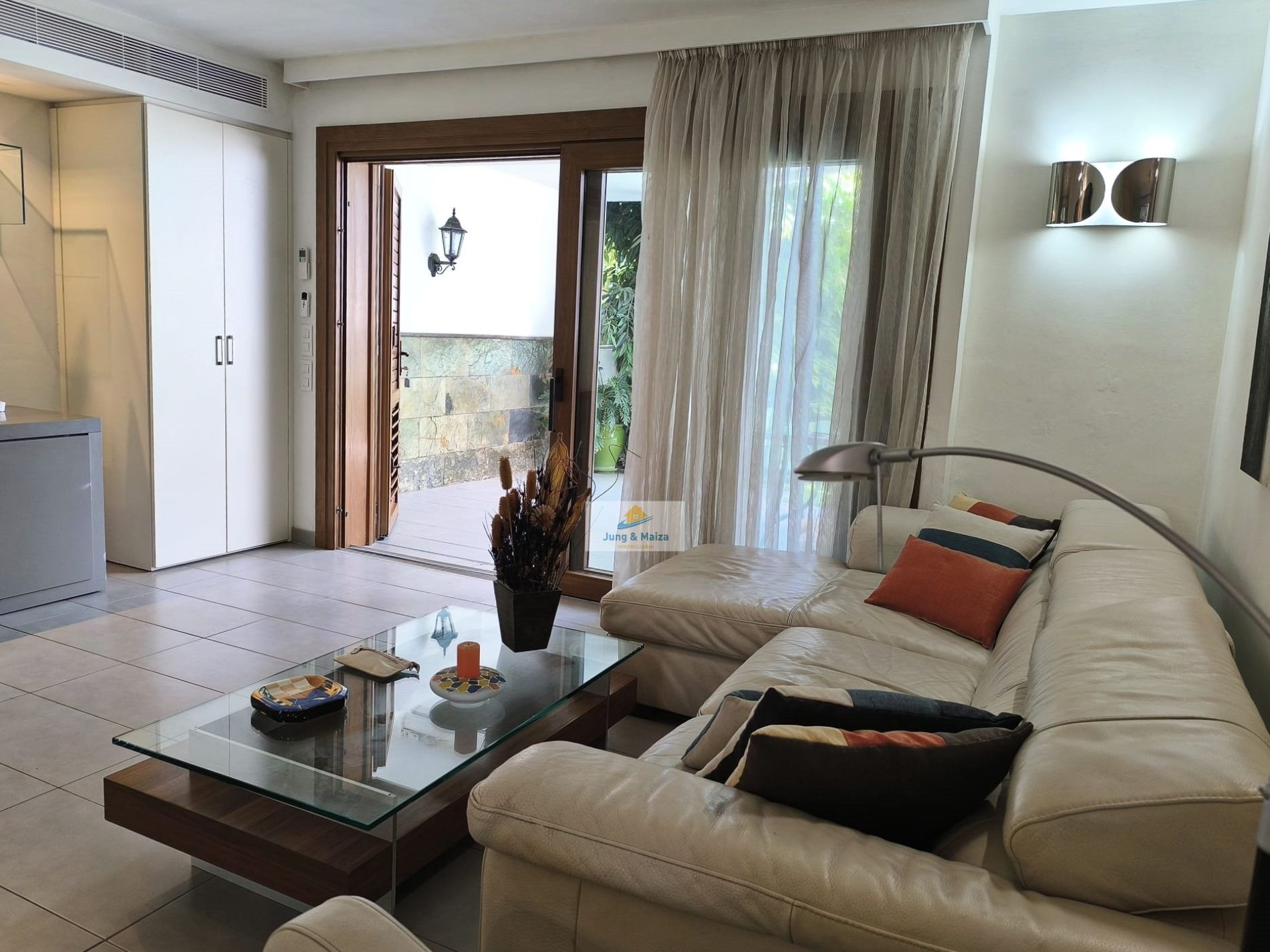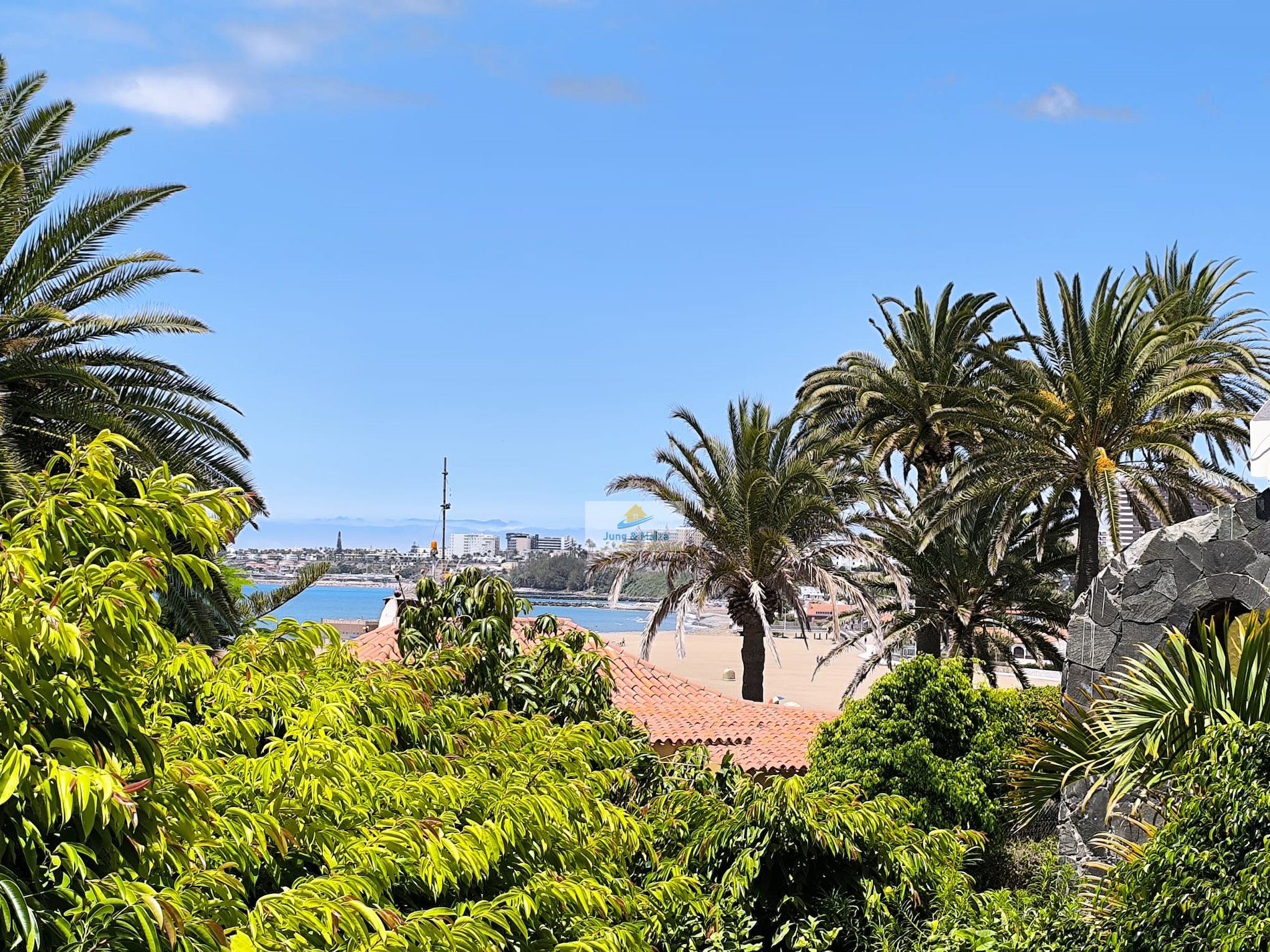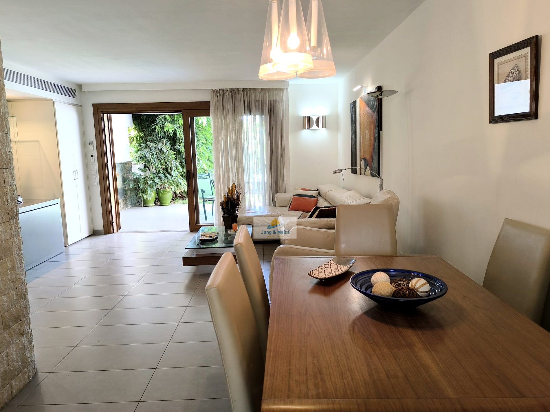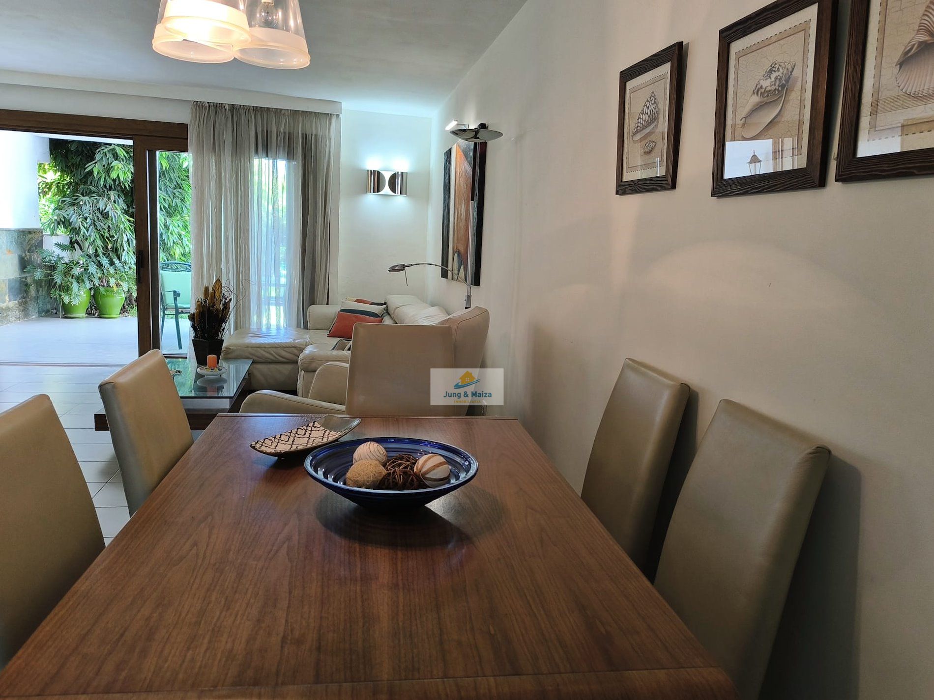 Jung & Maiza presents this elegant house for rent located a few steps from the San Agustín beach promenade. Available from September 1, 2025, until June 30, 2026. Minimum stays of 4 months. The property is distributed over two floors. On the main floor there is a large fully equipped kitchen, with a dishwasher, large refrigerator, oven, microwave and plenty of work space, it also has an attached laundry area with a washing machine, dryer and cabinets with storage space. Next is the dining area and living room, with access to the comfortable terrace and private garden. There is also a toilet on this floor. On the upper floor, where you have access, are the three bedrooms and a large bathroom with a shower and a cabinet with two sinks. Two of the bedrooms have access to a balcony from where you can enjoy views of the area, all the way to the beach. This magnificent property has air conditioning and many extras to make your stay more comfortable; It is spacious, well distributed and completely renovated with great taste and high quality. It also has a private parking space. The house belongs to a small complex with four houses that share the pool. Very quiet area and very well connected, with all services within walking distance. Rent includes Wi-Fi, water, and electricity costs up to €120 per month.