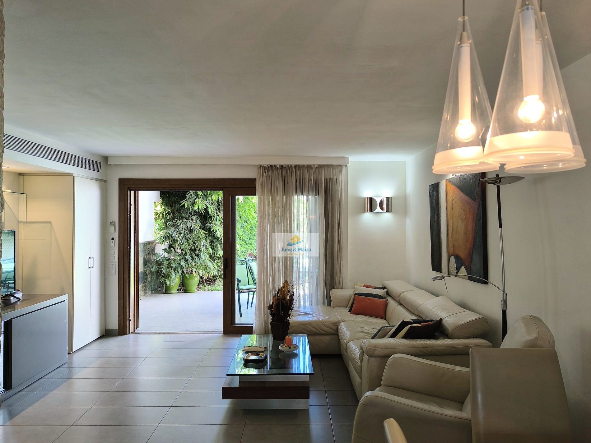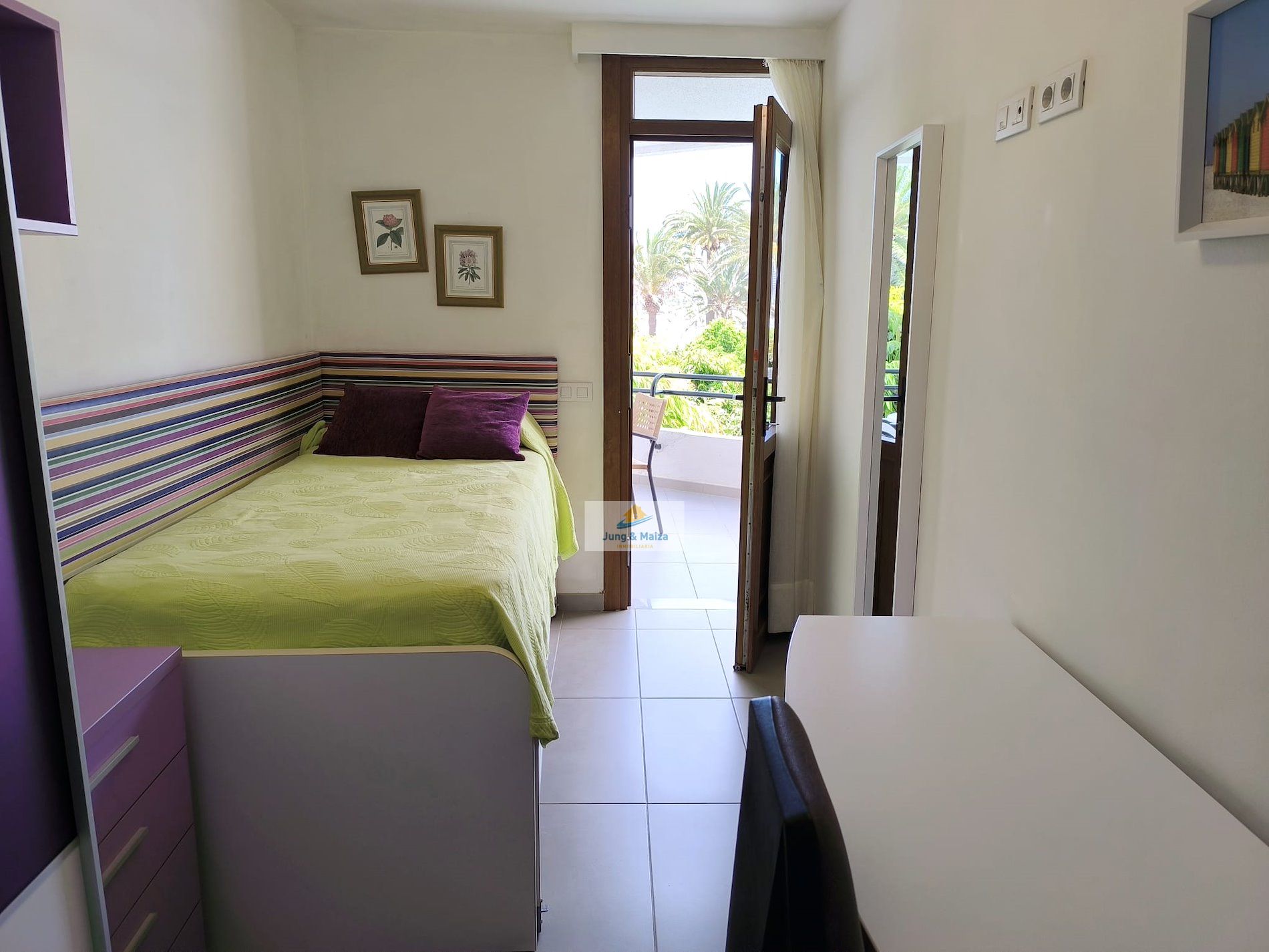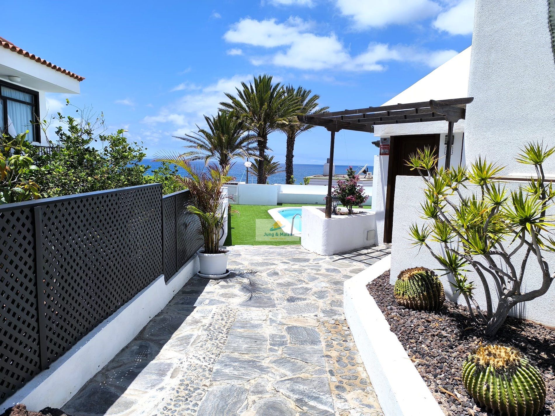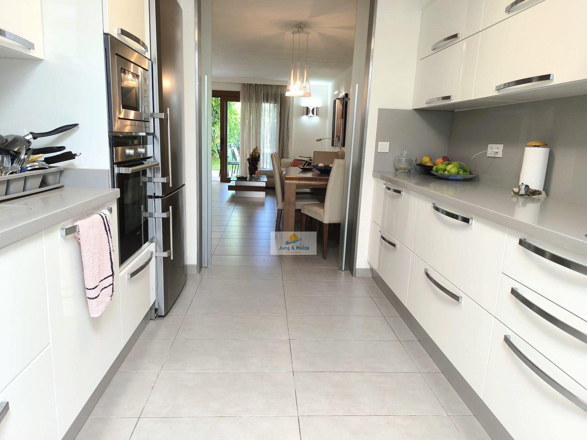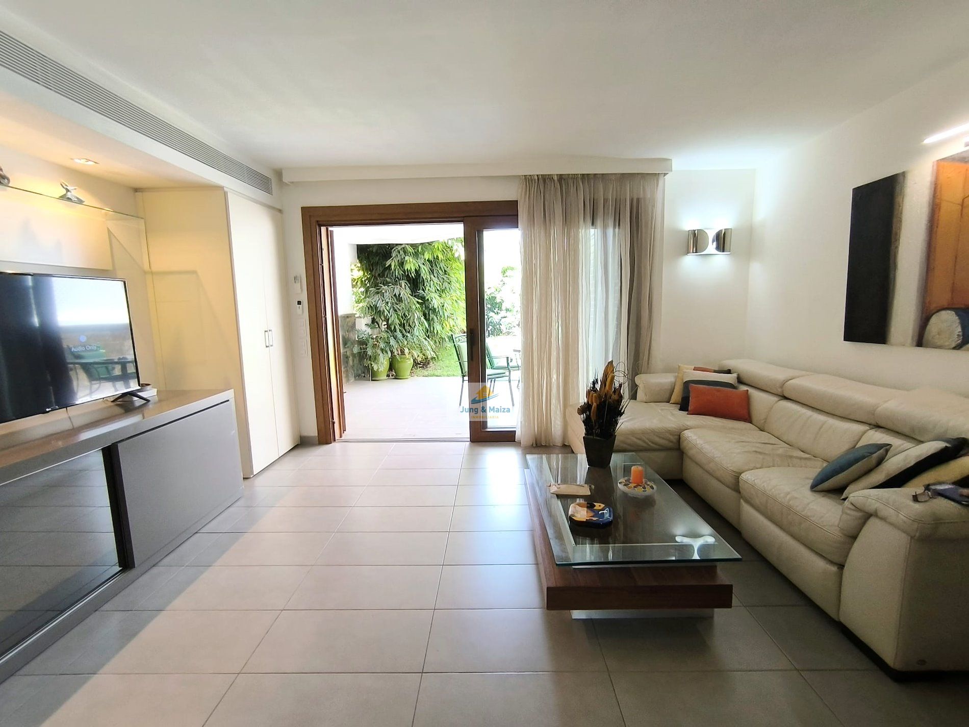 Jung & Maiza presents this elegant house for rent located a few steps from the San Agustín beach promenade. Available from September 1, 2025, until June 30, 2026. Minimum stays of 4 months. The property is distributed over two floors. On the main floor there is a large fully equipped kitchen, with a dishwasher, large refrigerator, oven, microwave and plenty of work space, it also has an attached laundry area with a washing machine, dryer and cabinets with storage space. Next is the dining area and living room, with access to the comfortable terrace and private garden. There is also a toilet on this floor. On the upper floor, where you have access, are the three bedrooms and a large bathroom with a shower and a cabinet with two sinks. Two of the bedrooms have access to a balcony from where you can enjoy views of the area, all the way to the beach. This magnificent property has air conditioning and many extras to make your stay more comfortable; It is spacious, well distributed and completely renovated with great taste and high quality. It also has a private parking space. The house belongs to a small complex with four houses that share the pool. Very quiet area and very well connected, with all services within walking distance. Rent includes Wi-Fi, water, and electricity costs up to €120 per month.