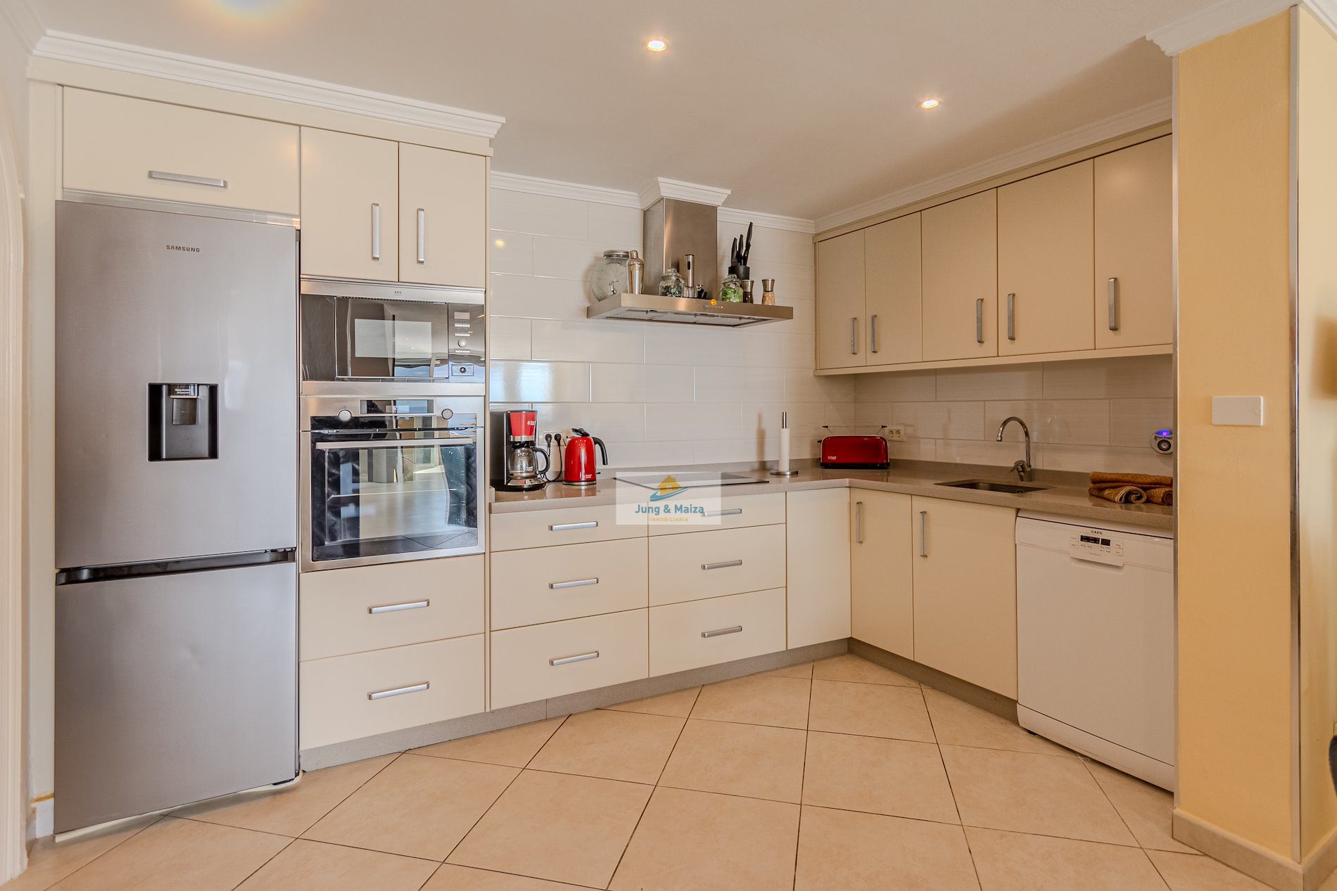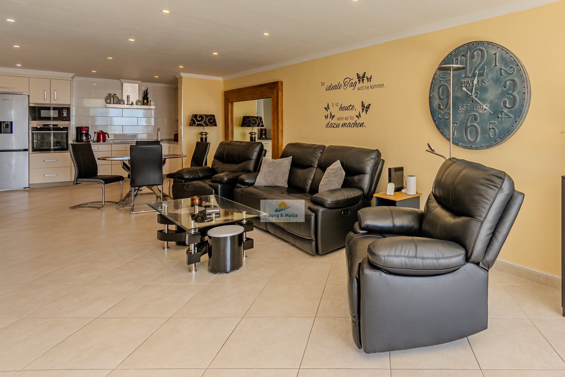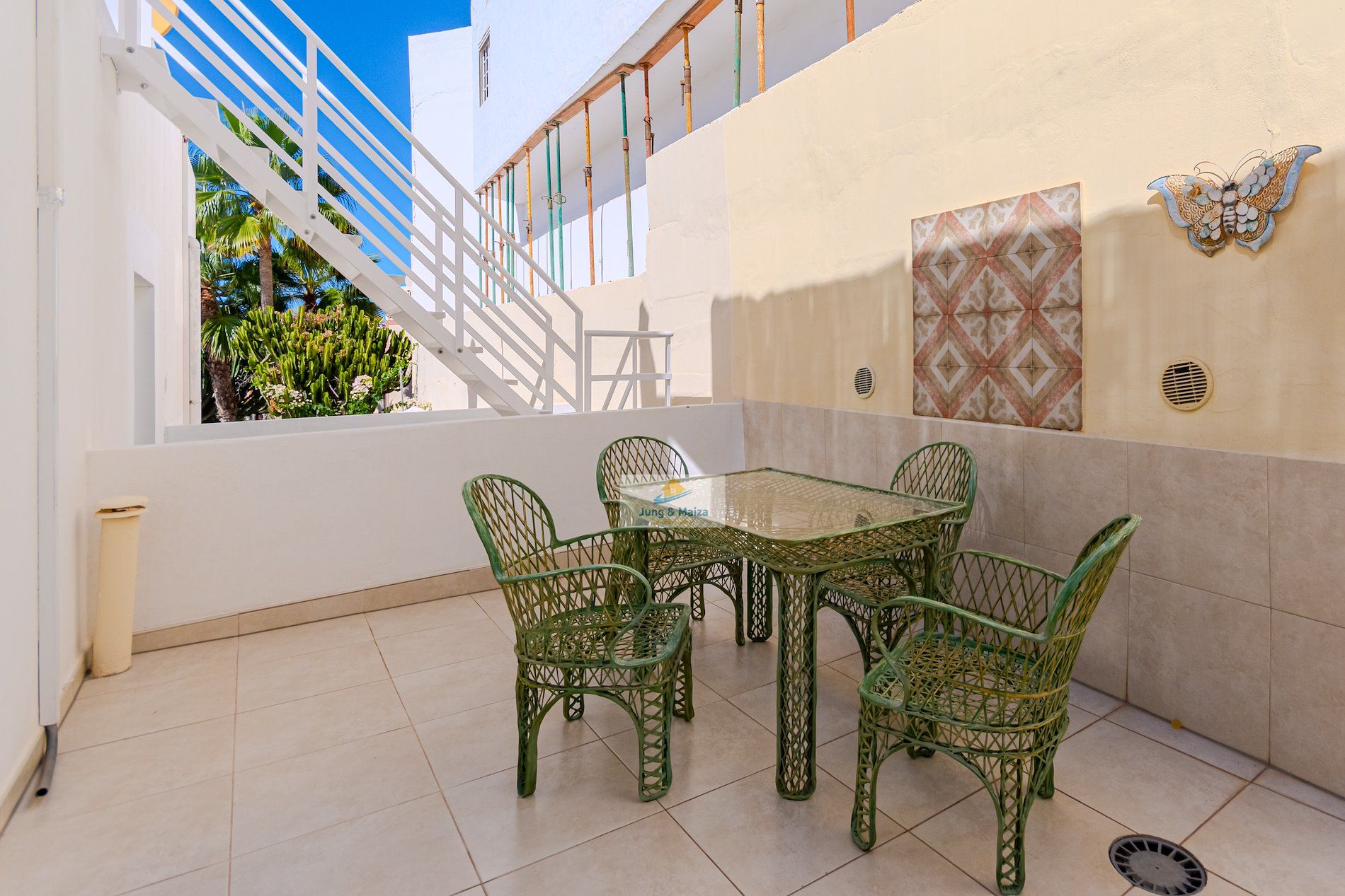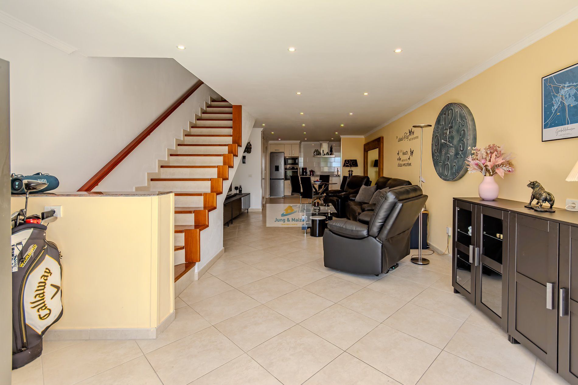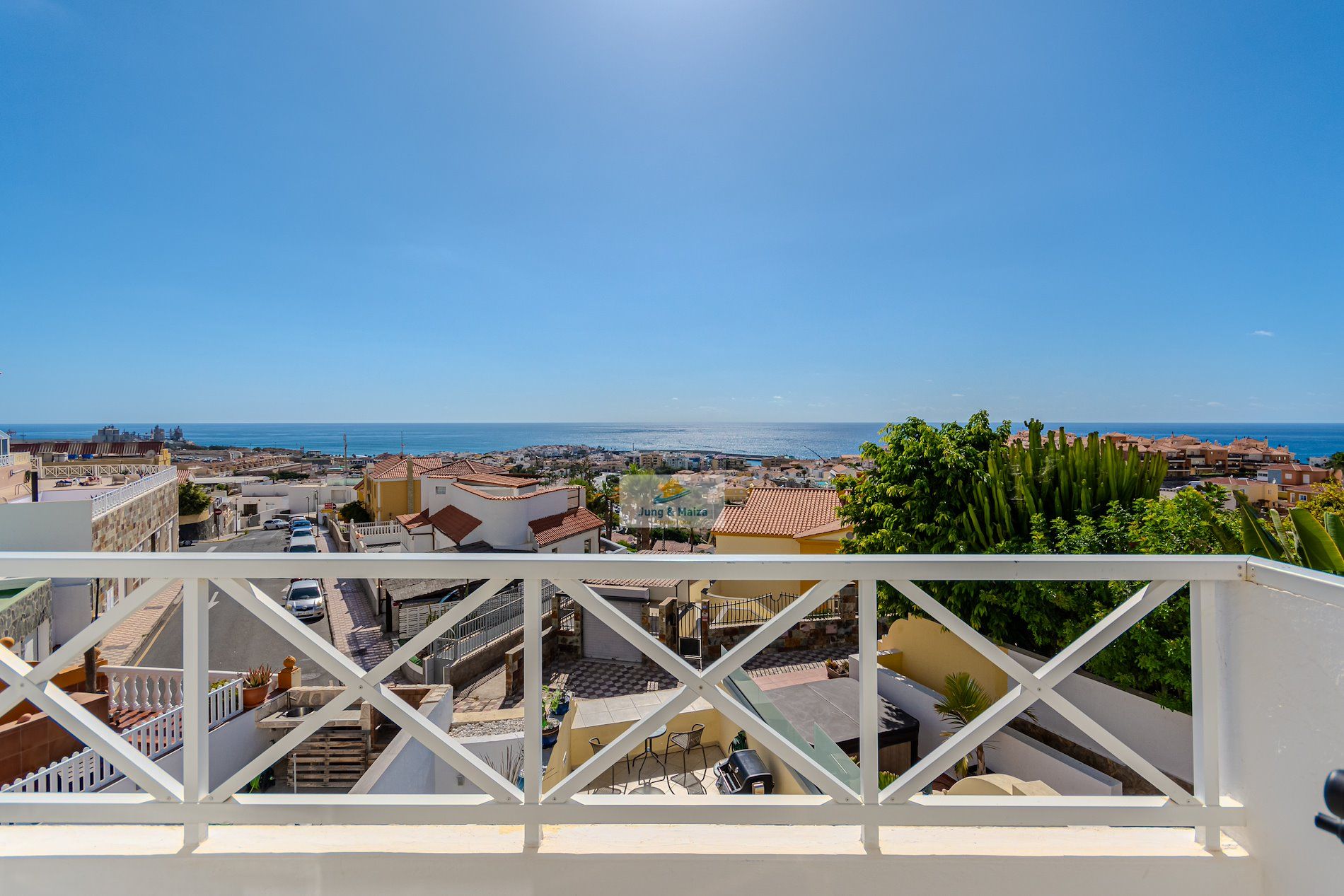 This townhouse combines modern living comfort with a unique ocean view. The house boasts three terraces, offering a Mediterranean flair and unforgettable sunsets over the Atlantic. Perfectly south-facing, the property enjoys sunshine throughout the day. All terraces and balconies offer breathtaking views of the Atlantic Ocean, making this location truly unique. Experience breathtaking sunsets right from your home. The property is sold furnished. GARAGE NO COMMUNITY FEES � Property Description • Three bedrooms, one with a stunning sea view • Spacious living and dining room with access to the terrace • Modern, very large fitted kitchen • Newly renovated bathroom and separate guest toilet • Garage with electric roller door and remote control � Highlight terraces with Atlantic views • Roof terrace (approx. 30 m²) with unobstructed panoramic views • Terrace off the living room with a gas fireplace – perfect for cozy evenings • Additional south-facing terrace with guaranteed sunshine and sea views • New, spacious awning for shaded areas ✨ Amenities • All rooms with new air conditioning and TV Equipped • Living room with modern 85-inch TV and electrically adjustable leather sofa • Bedroom with high-quality box-spring beds • Dark-tinted south-facing windows – ideal for privacy and a pleasant indoor climate • Washing machine available • Weber gas grill included.